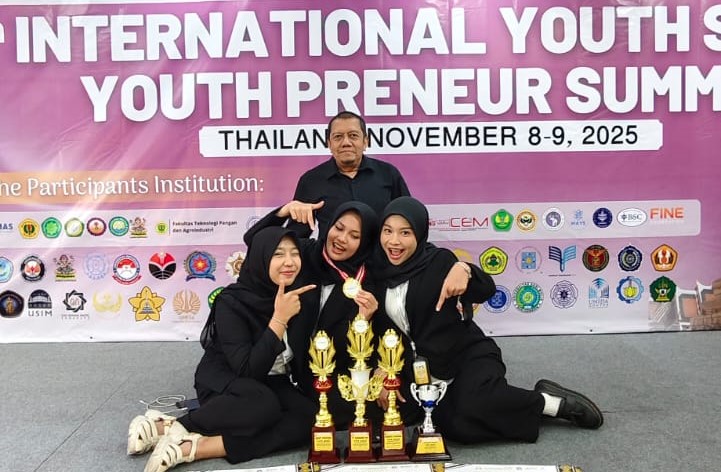 VIP- Bangkok,  8 November 2025 – Tiga mahasiswa Fakultas Kedokteran Universitas Hang Tuah (FK UHT) kembali menorehkan prestasi membanggakan di tingkat internasional. Tim yang terdiri atas Syahrilla Naswa Alamsyah Putri (20220410200), Luthfia Wahyu Ramadlani (20220410213) dan Azalia Shafaa Nareswari Irawan (20220410209) berhasil meraih sejumlah penghargaan pada ajang Youthpreneur Summit (YPS) 2025, yang berlangsung di Bangkok, Thailand, pada 8 November 2025.